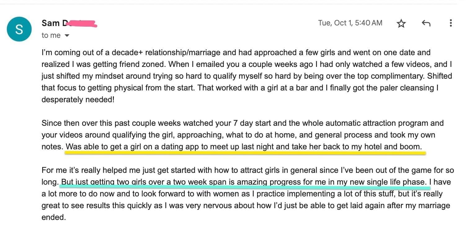 Like Sam, Who Came Out Of A 10-Year Marriage & Scored Two New Dates In 1 Week Using What I Teach In The Course!
