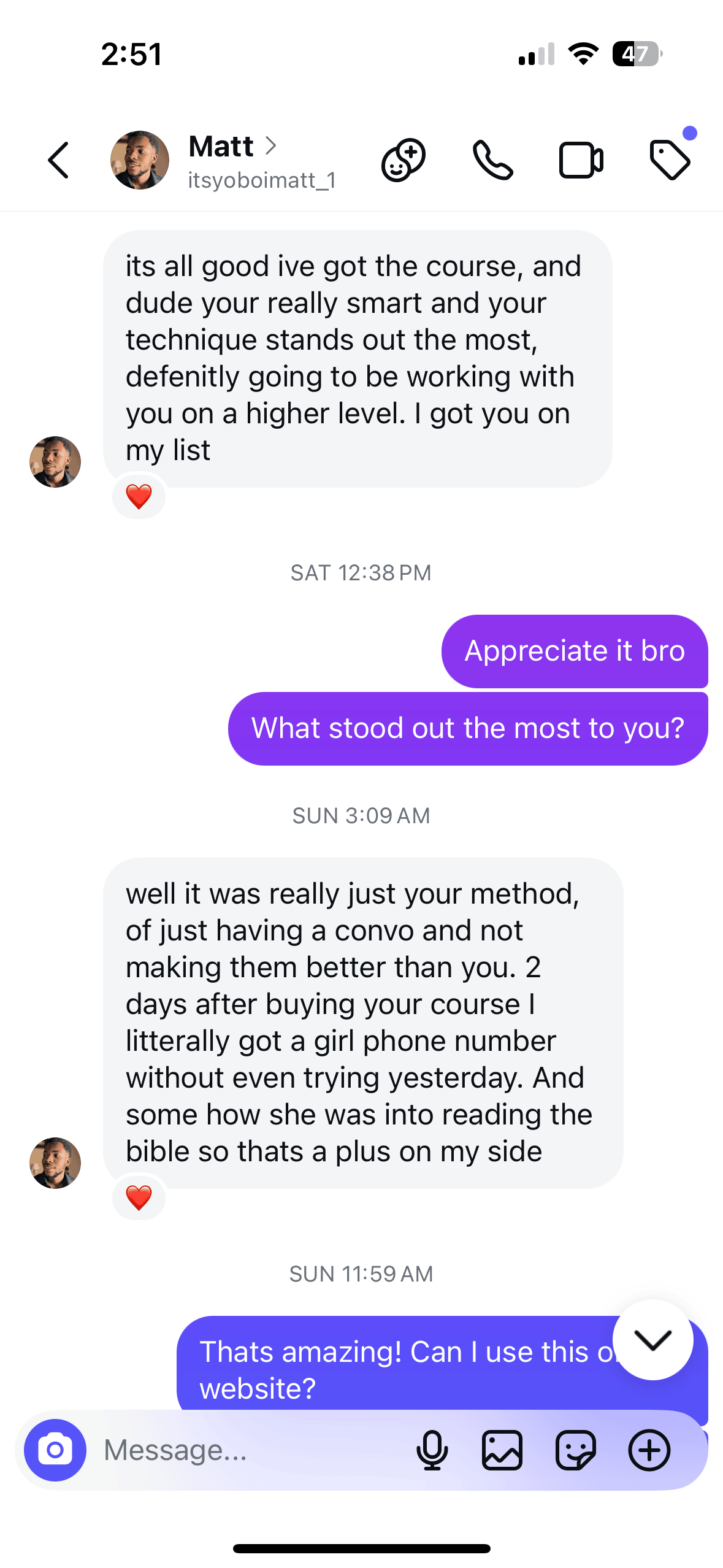 Or Matt, Who got a girl's phone number Just 2 days after joining the course!